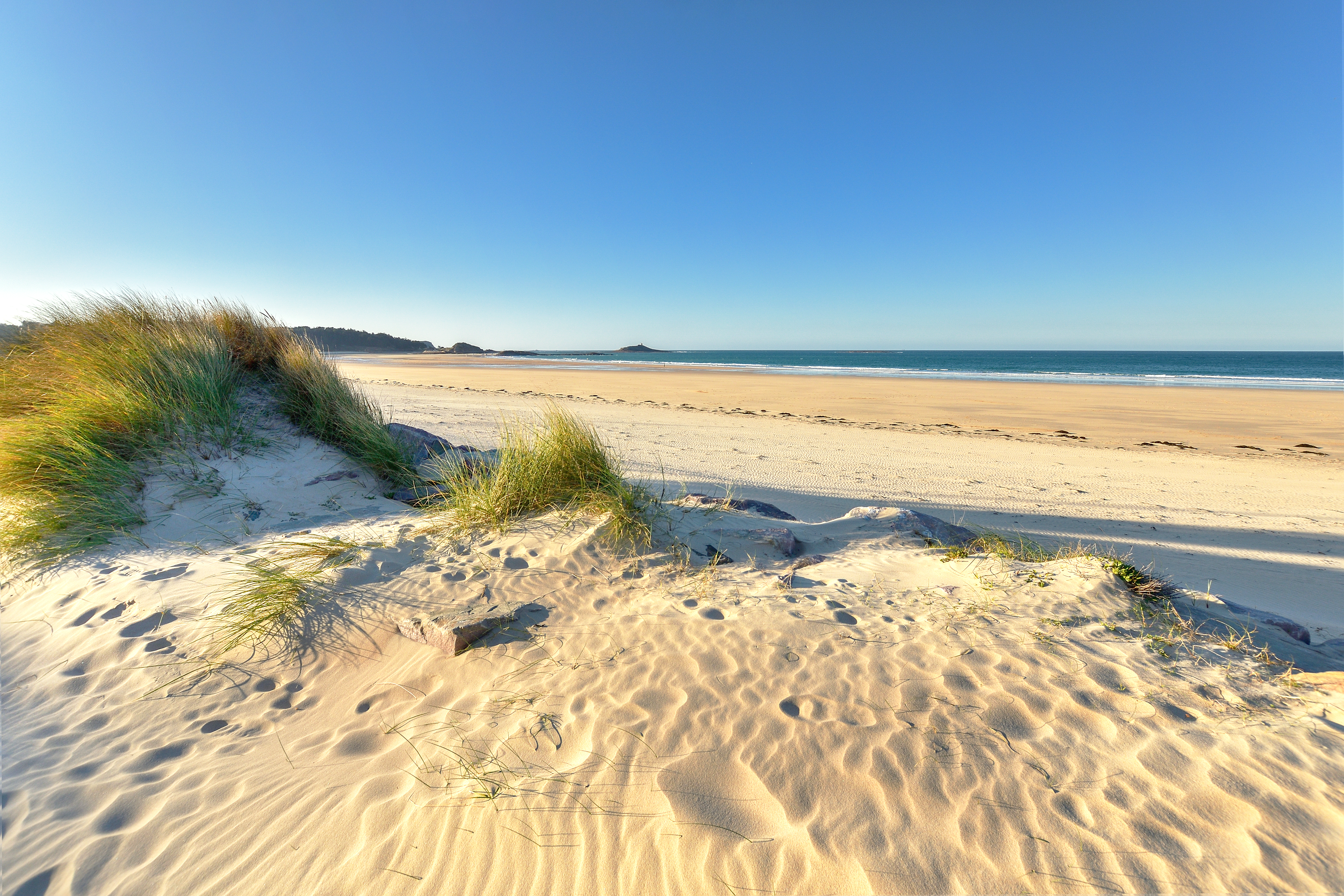 La grande plage de Sables-d'Or-les-Pins, longue de 3 km, est idéale pour les familles. Elle est située en plein coeur de la station balnéaire des années 20, avec restaurants et commerces à proximité. Elle offre un beau point de vue sur l'ancienne carrière de Fréhel, ainsi que sur l'ilôt Saint-Michel.